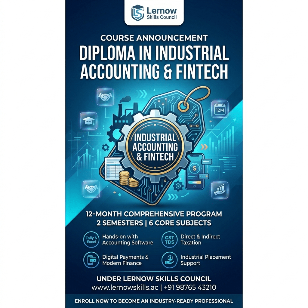 Here is a structured 12-month course outline for the Industrial Accounting & Fintech program, specifically designed for the Lernow Skills Council (LSC).